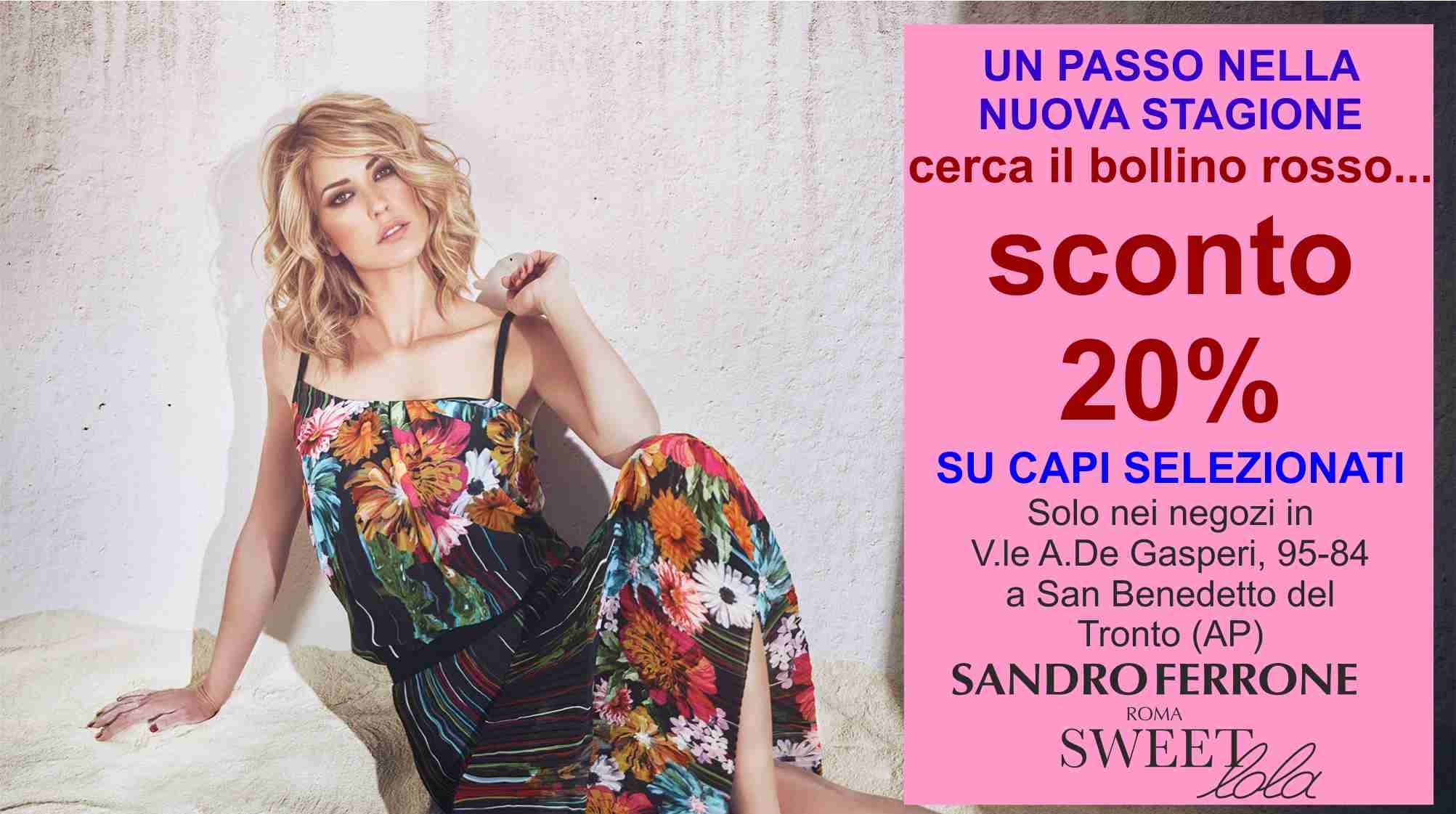 Solo nei negozi di San Benedetto, in viale A. De Gasperi (ai civici 95 e 84) sconto del 20% su capi selezionati.