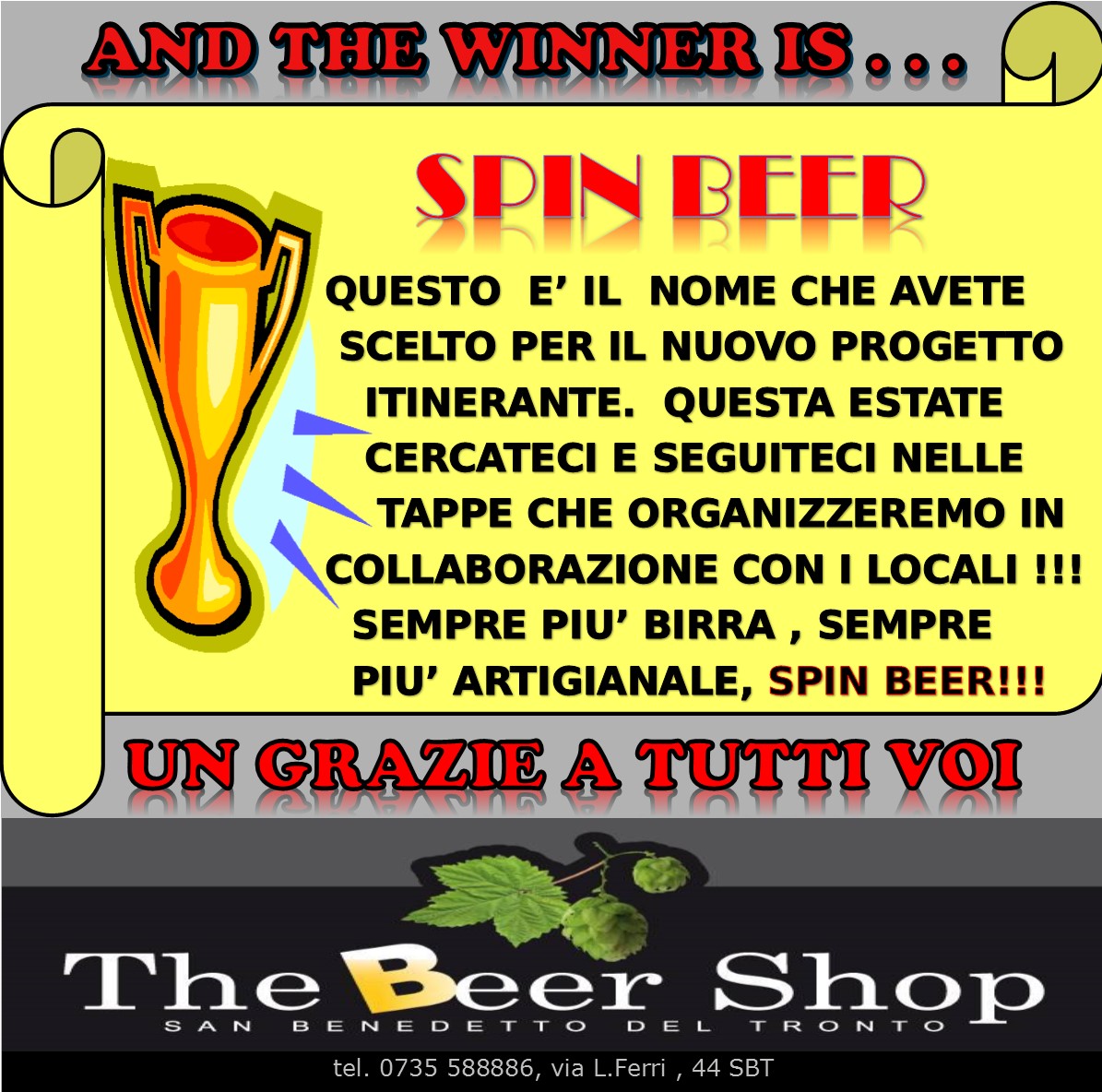 Il nome è stato scelto dai clienti del locale, che nella pagina Facebook “The Beer Shop” hanno dato la loro preferenza al nome “Spin Beer”