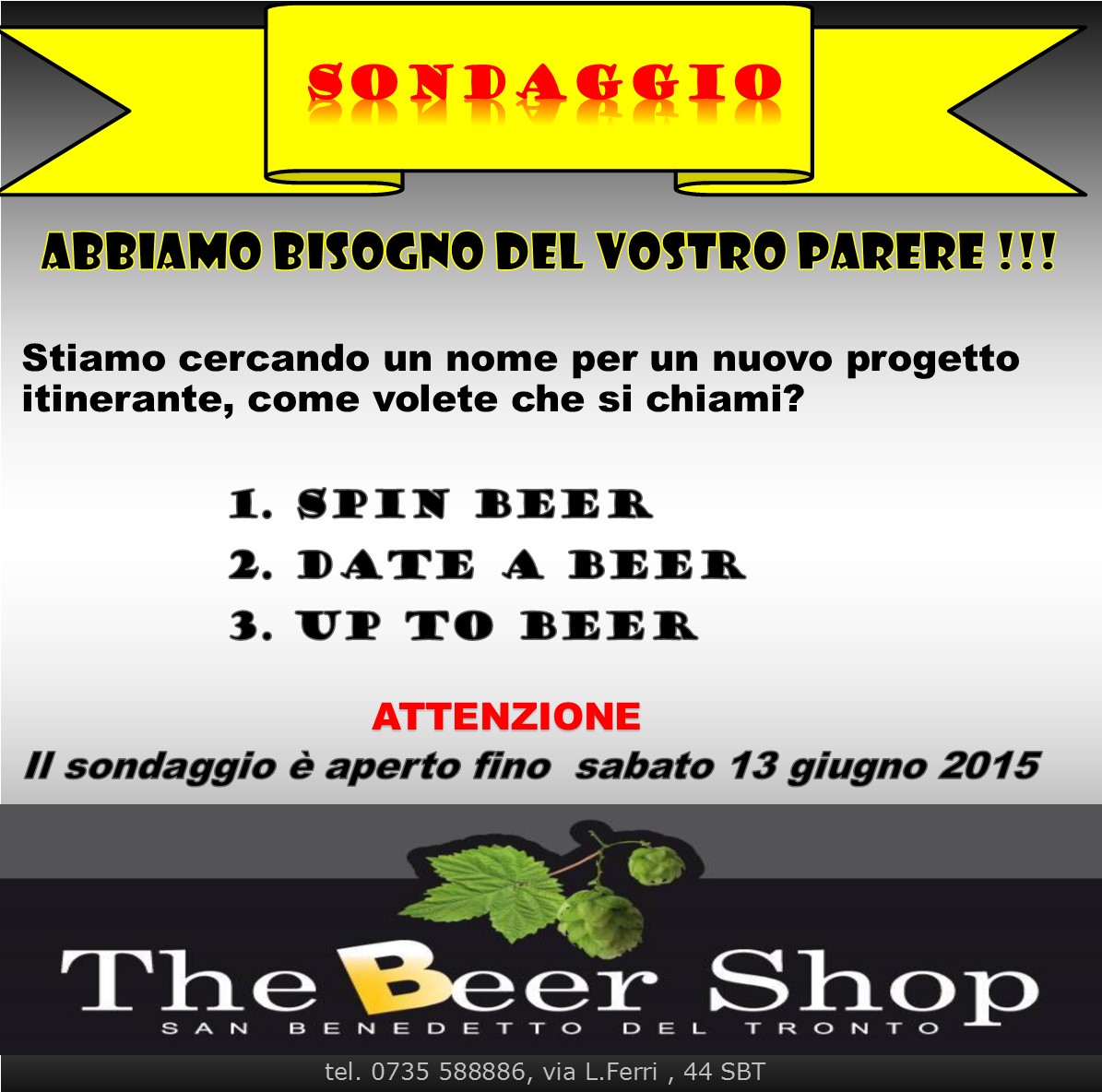 Fare scegliere ai clienti il nome del nuovo progetto del Beer Shop di San Benedetto, in via Ferri. Ecco la simpatica idea del locale.