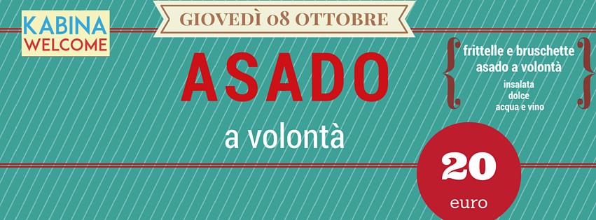 Asado a volontà, giovedì 8 ottobre da Kabina Welcome