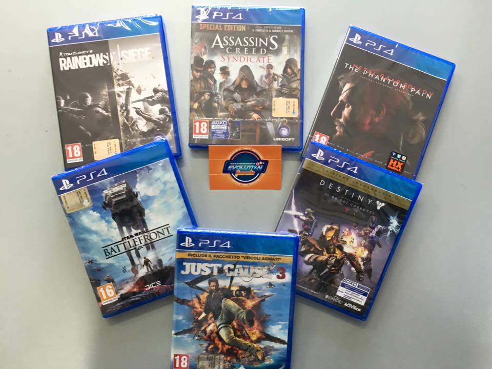 I giochi in promozione sono: Tom Clancy’s Rainbow Six Siege, Assassin’s creed Syndicate, Just cause 3, Metal gear solid V The phantom pain, Star wars: Battlefront, Destiny il re dei corrotti legendary edition.