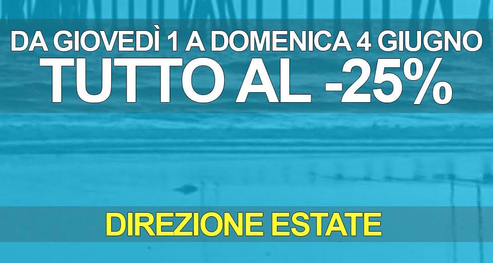 Non perdere la straordinaria promozione valida da giovedì 1^ a domenica 4 giugno: tutto scontato al 25 per cento!