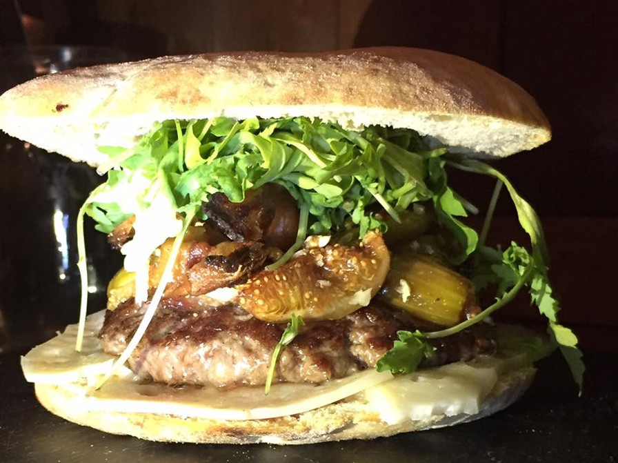 Il Birritrovo ti aspetta con il panino di settembre: hamburger di scottona da 200gr, fichi caramellati al bourbon, guanciale croccante, pecorino fresco, rucola e noci