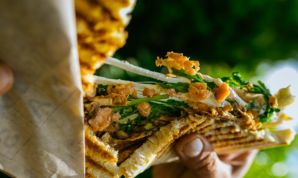 La toasteria Calona’s presenta un’autentica esplosione di gusto fatta di ingredienti prelibati e autentici. Dal salame piccante tostato alla frittatina, dal bacon alla scamorza affumicata, fino alla cipolla rosa di tropea caramellata, la maionese e la lattuga.