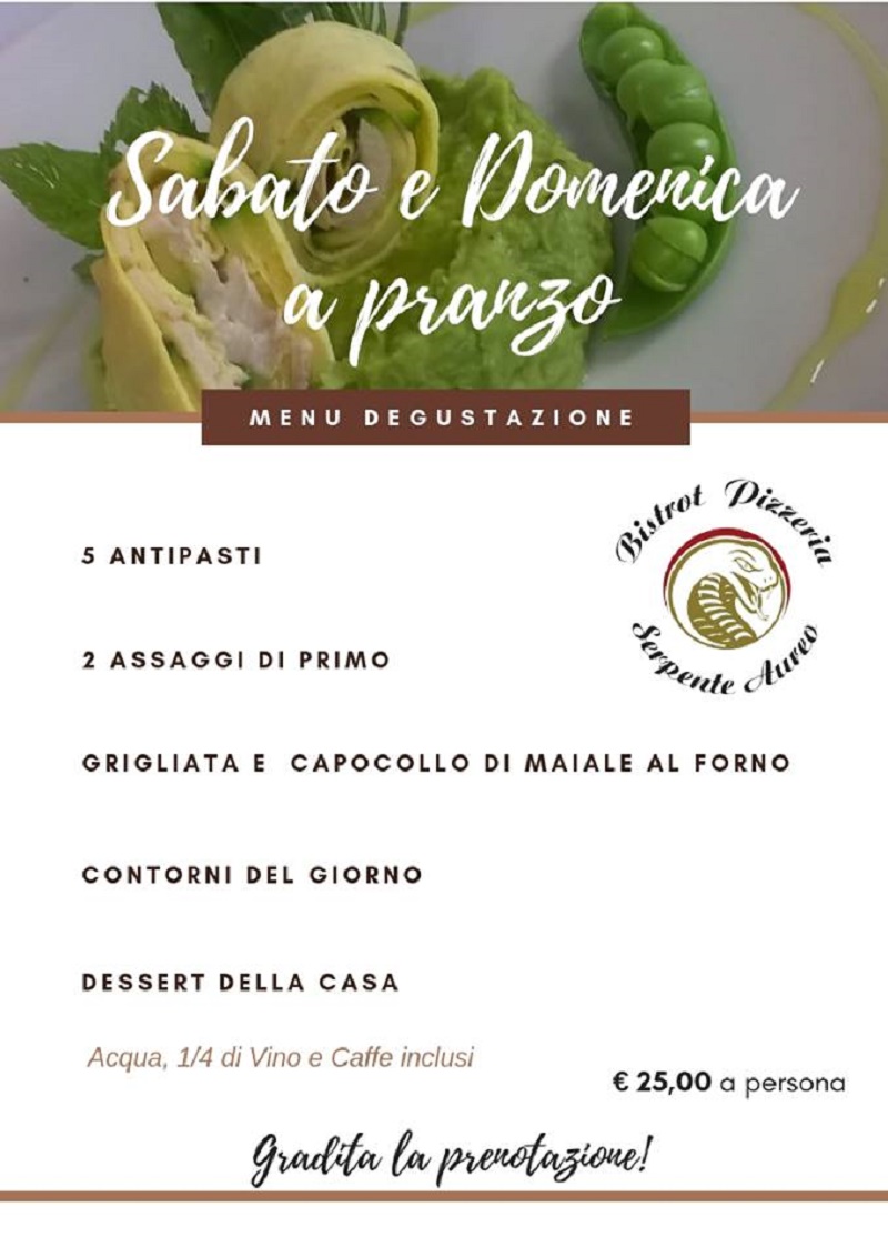 Menù degustazione a pranzo ogni sabato e domenica, vai da Bistrot Pizzeria Serpente Aureo