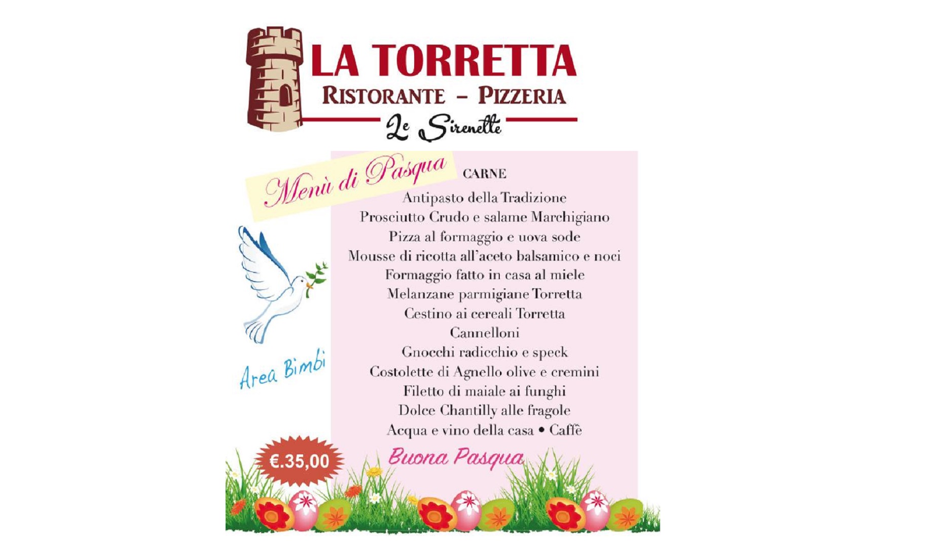La domenica di Pasqua il ristorante pizzeria La Torretta ti aspetta! Ecco il menù