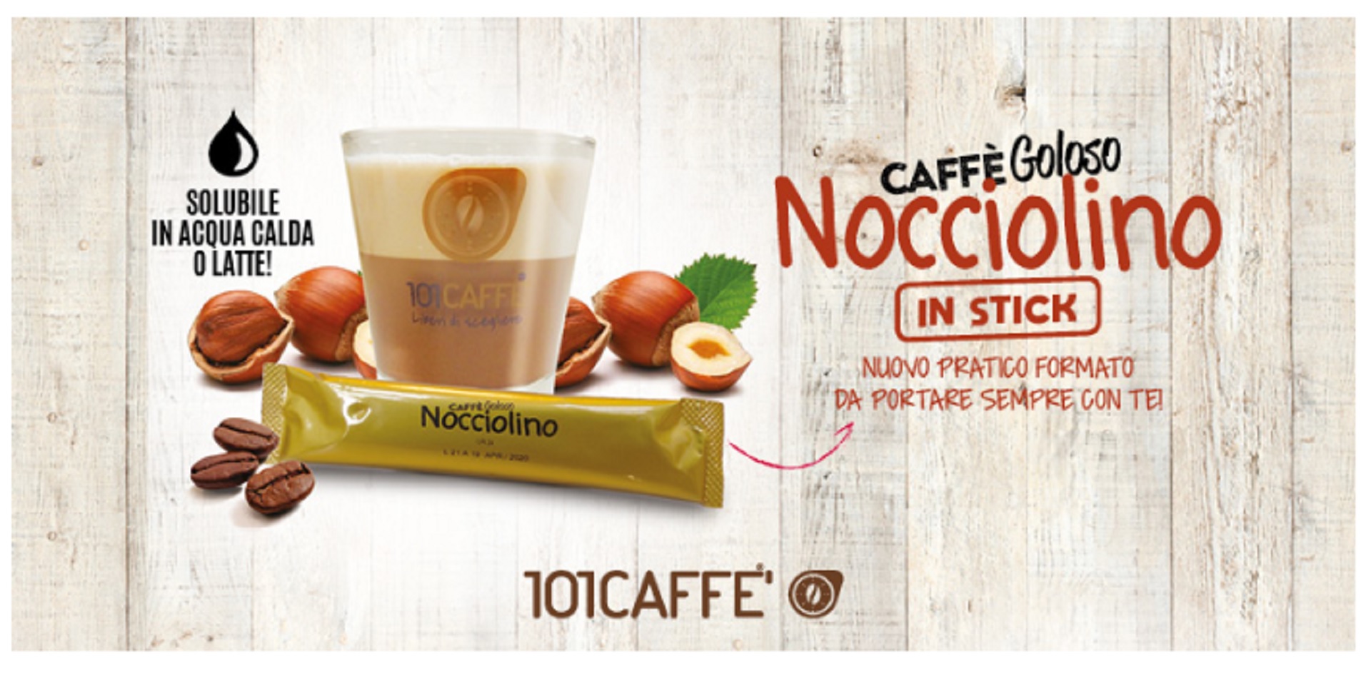 Scopri Nocciolino, il goloso caffè solubile in stick di 101Caffè