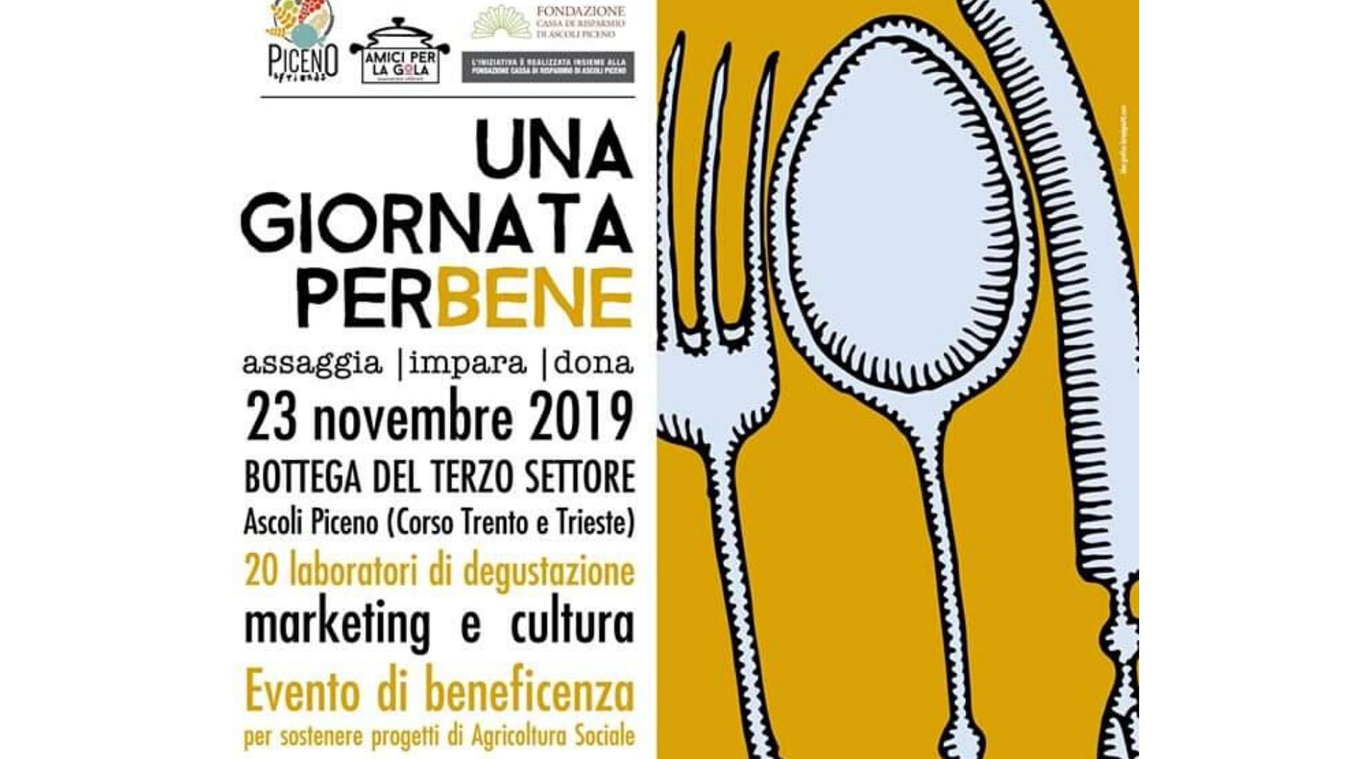 “Una giornata per Bene” è il titolo dell’evento di beneficenza con 20 laboratori di degustazione. Non ve lo vorrete mica perdere?