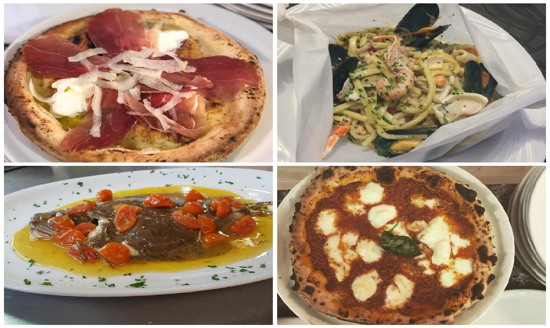 Pesce: scialatiello allo scoglio in cartoccio; rombo al forno con pachino fresco.
