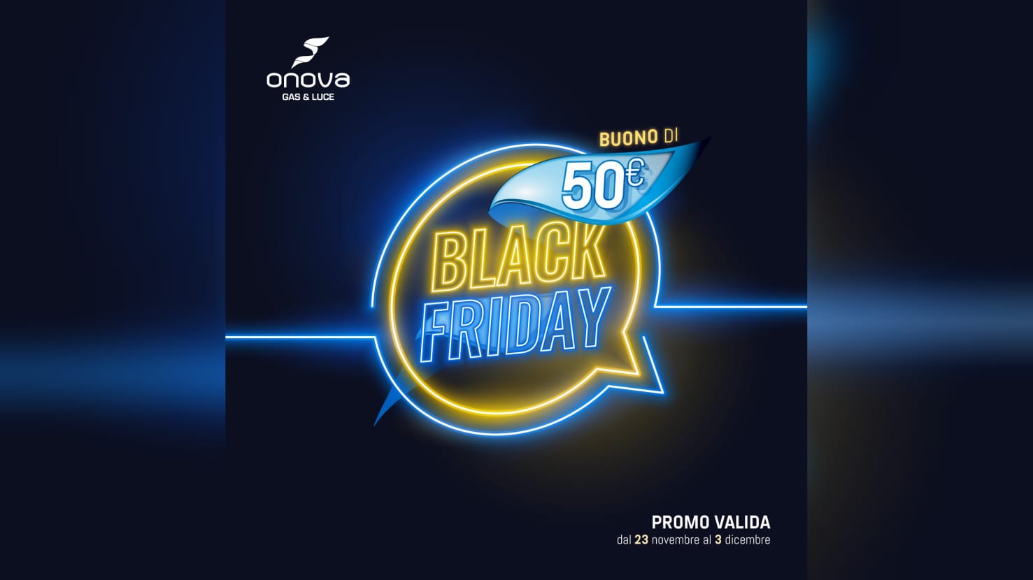 Passa a Onova e compila il contratto online: subito per te, oltre al -20% del prezzo web, un bonus di 50 euro da scontare sulla prima bolletta luce: https://www.onova.it/black-friday
