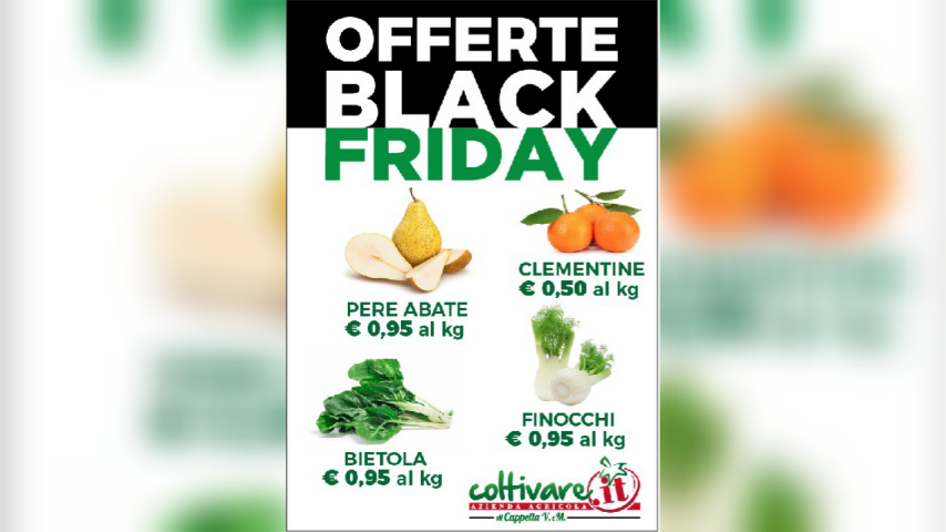 Giovedì 26, venerdì 27 e sabato 28 novembre, in occasione del Black Friday, offerte su frutta e verdura: