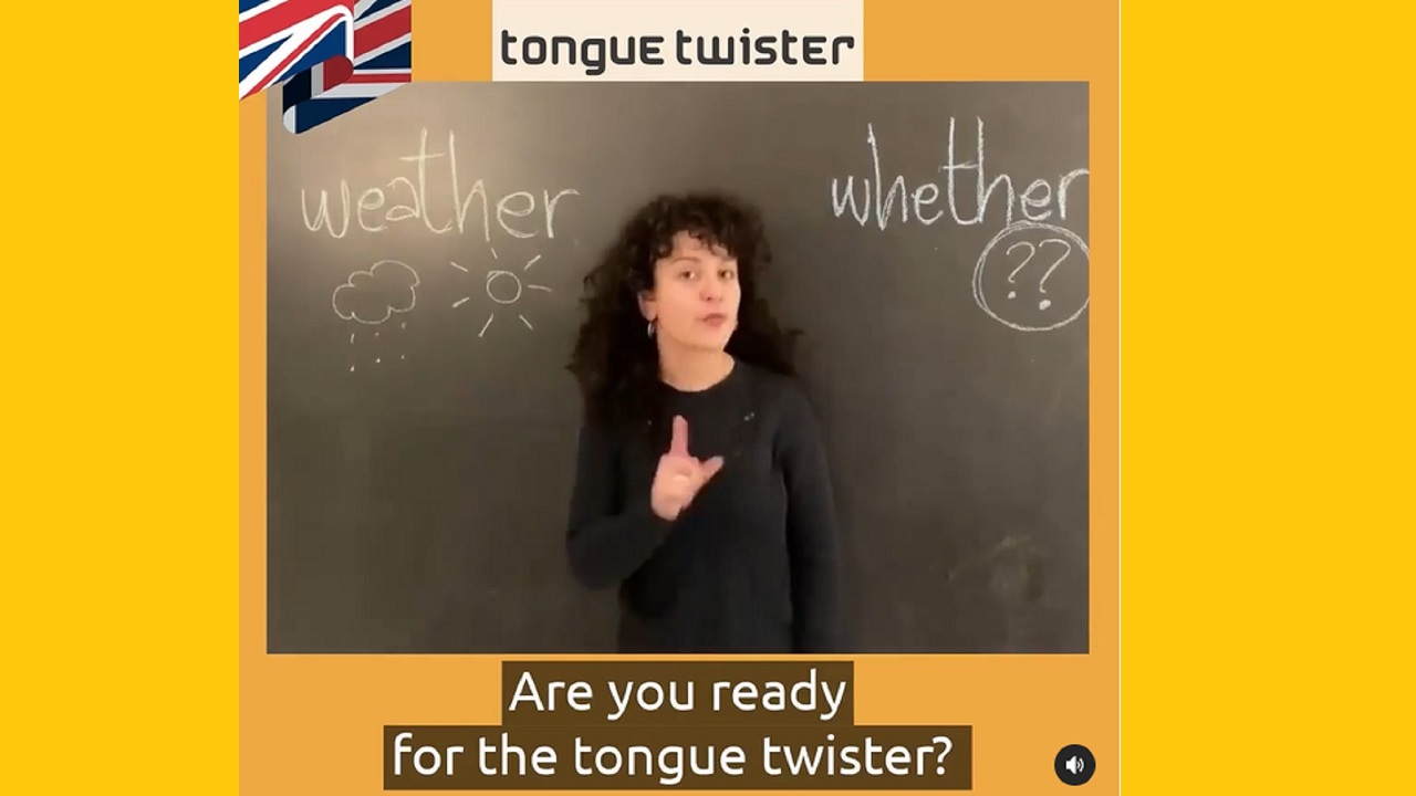 L’insegnante di inglese Silvia ha scelto un “Tongue Twister” per esercitare gli omofoni, cioè due parole diverse che però si pronunciano allo stesso modo. Un esempio? “Weather” e “Whether”.