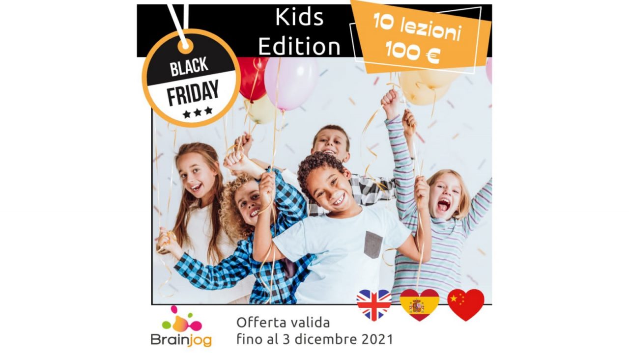 Da Brainjog arriva il Black Friday Kids Edition! Approfittane per conoscere i corsi di inglese, spagnolo e cinese specifici per bambini e ragazzi!