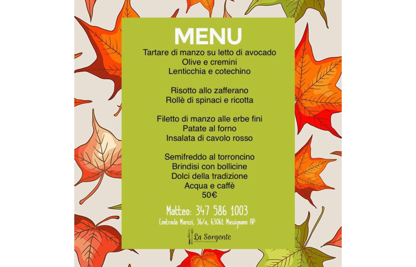 Cenone di San Silvestro a La Sorgente Country House. Ecco il menù