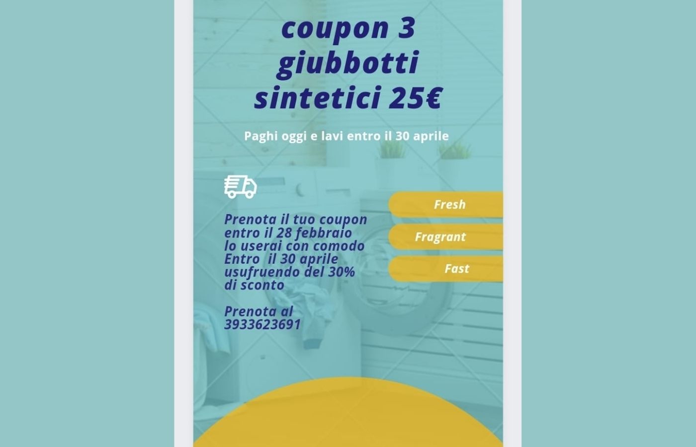 Ancora per una settimana, puoi prenotare al 3933623691 un coupon al prezzo di 25 euro anziché 36 euro per il lavaggio di 3 giubbotti sintetici