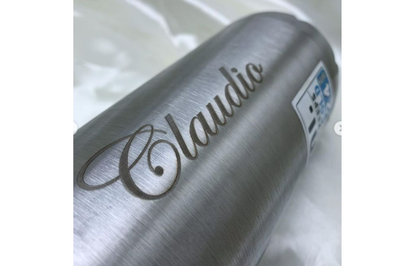 Da Sami Creazione Gioielli puoi personalizzare qualsiasi oggetto in metallo, come questa borraccia.