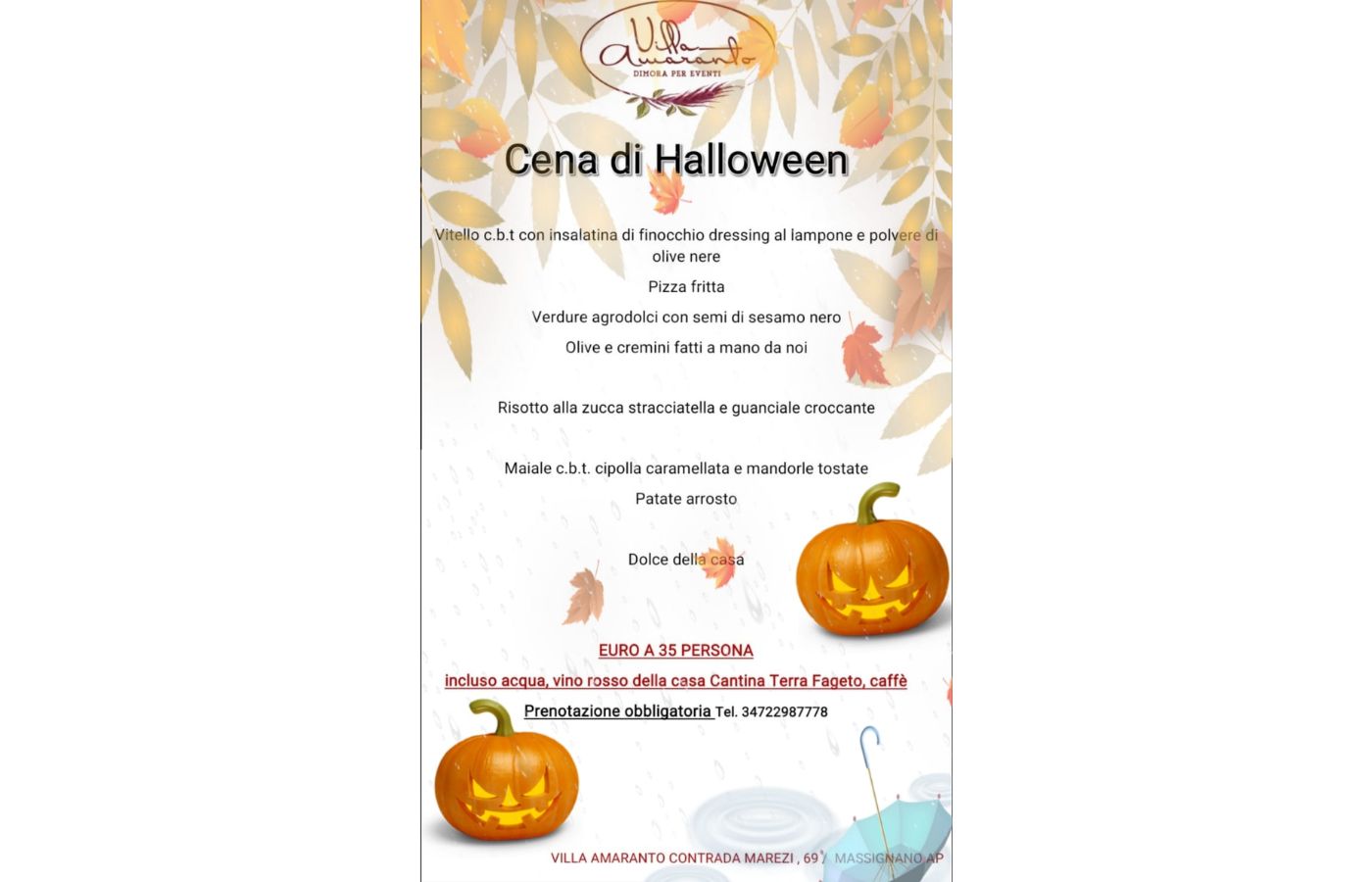 Halloween di gusto, da Villa Amaranto! Scopri il menù e preparati a una cena da paura!