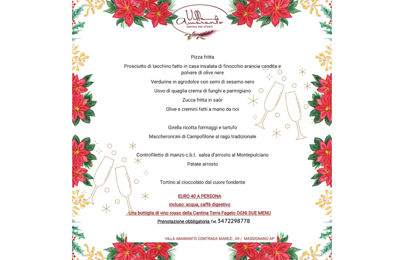 Villa Amaranto vi aspetta il 1° gennaio con un pranzo vario, ricco e gustoso, alla portata di tutti.