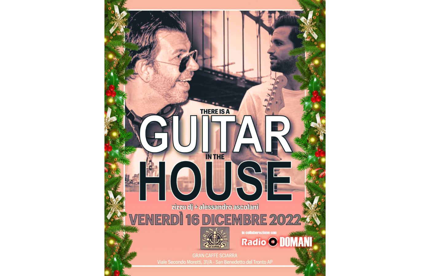 Il Gran Caffè Sciarra vi aspetta venerdì 16 dicembre per una serata all’insegna della più bella musica con Zizzu DJ e Alessandro Ascolani, il chitarrista dei Regina che suonerà dal vivo!
