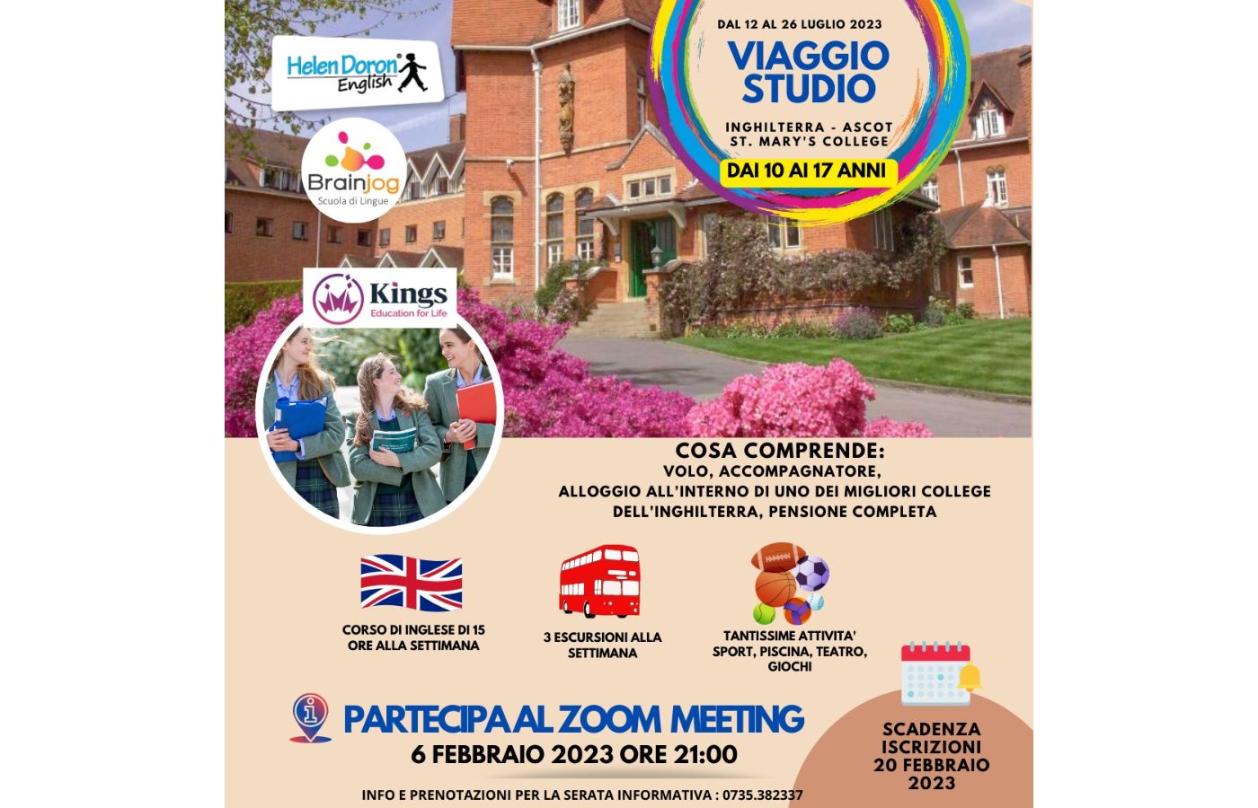 Brainjog accompagna i ragazzi dai 10 ai 17 anni in un indimenticabile viaggio studio in Inghilterra, dal 12 al 26 luglio.