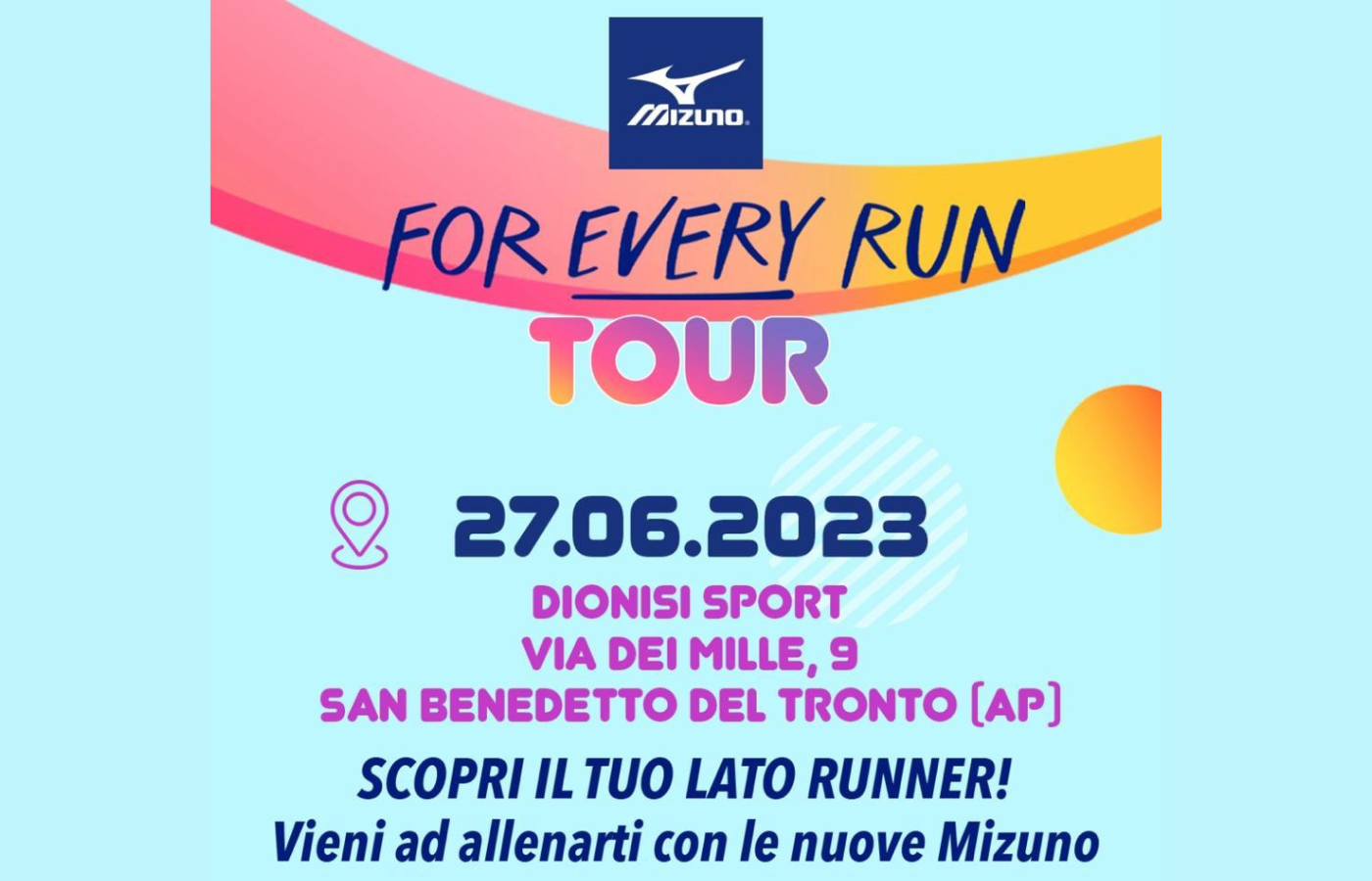 Scopri il tuo lato Runner con Mizuno! Il “For Every Run Tour” fa tappa da Dionisi Sport a San Benedetto.
