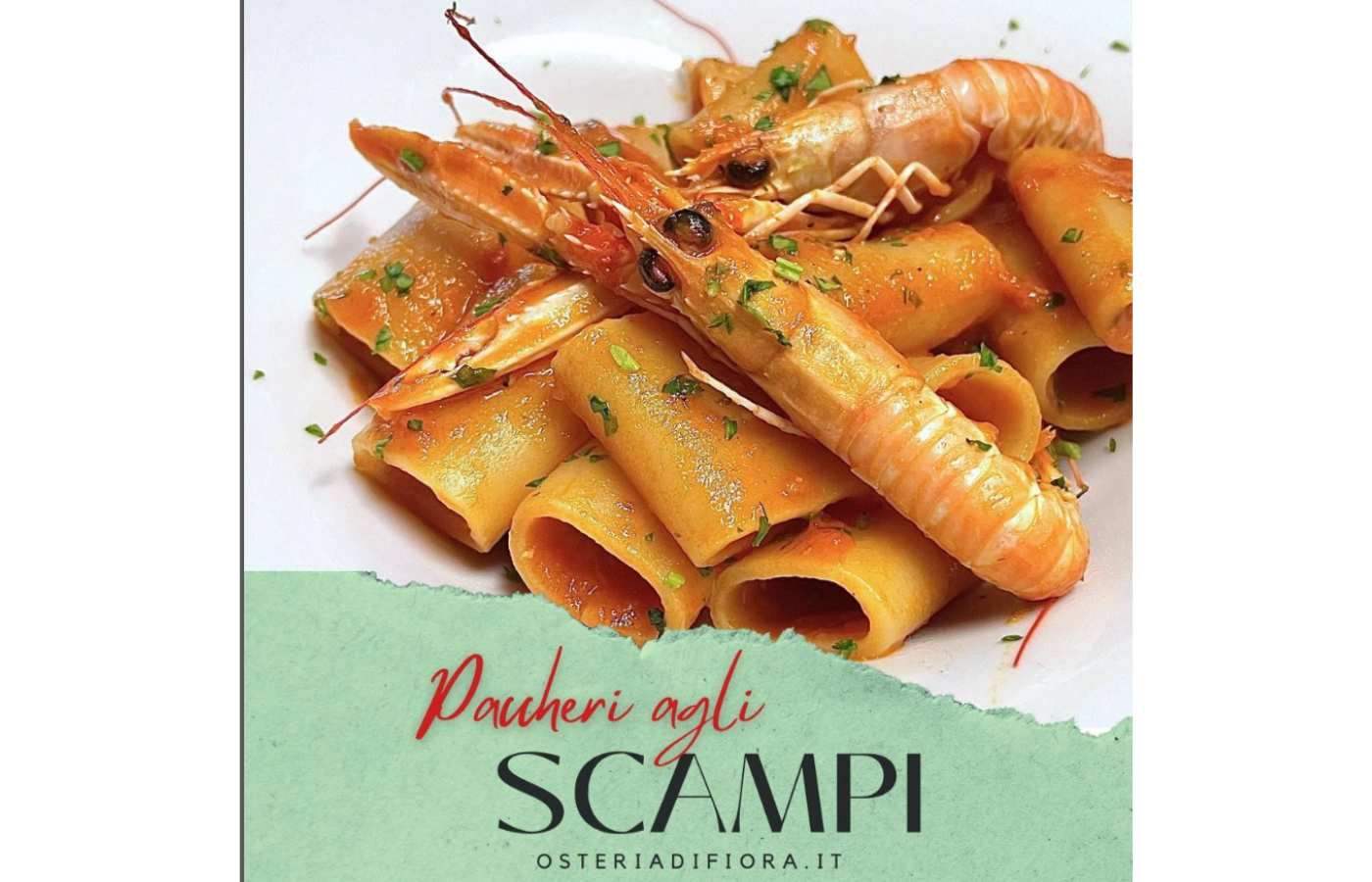 Dal menù pesce, i deliziosi Paccheri agli Scampi