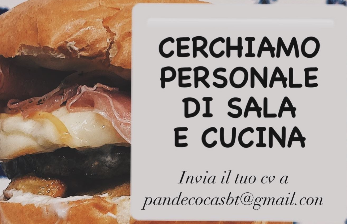 Inviaci il tuo cv all’indirizzo email pandecocasbt@gmail.com