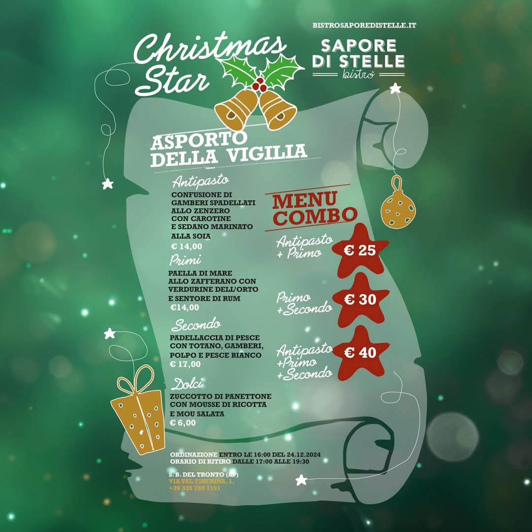 Ordina il tuo menù natalizio d’asporto al Bistrò Sapore di Stelle