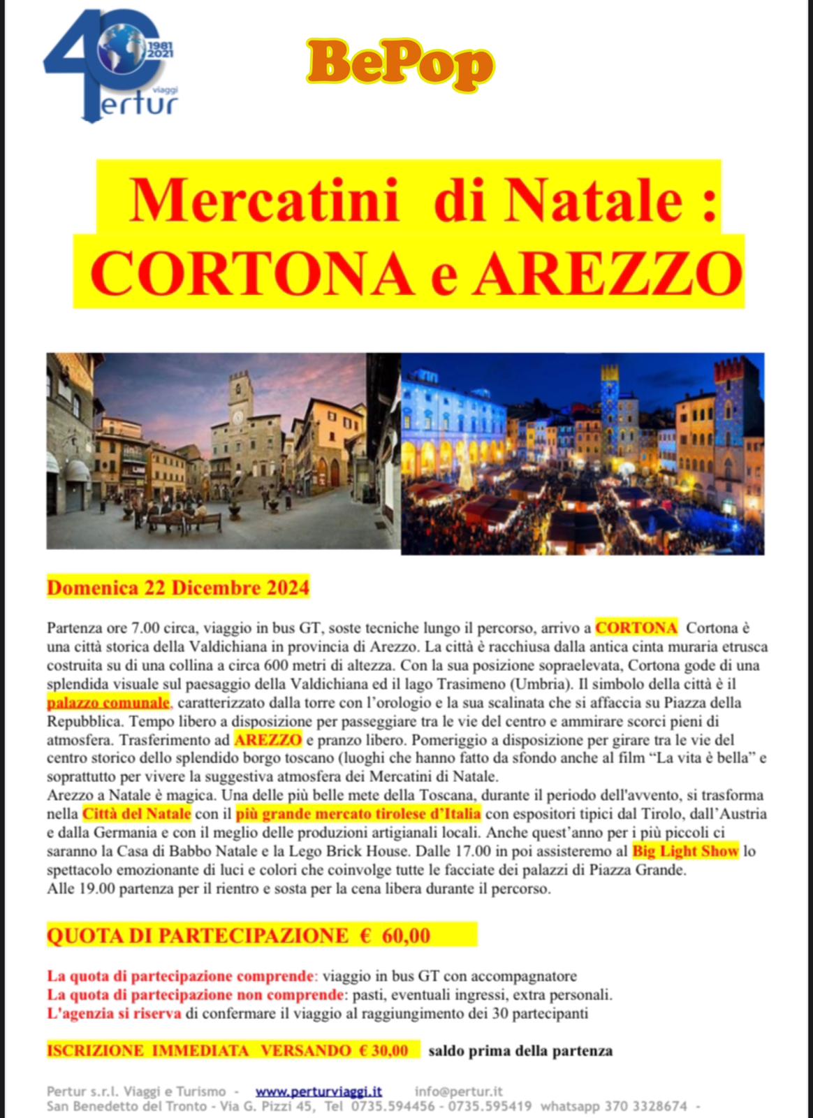 Parti con Pertur Viaggi e visita il mercatino di Natale di Cortona e Arezzo.