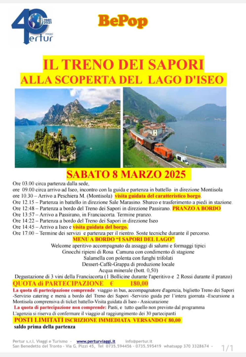 Parti anche tu con Pertur Viaggi alla scopert del LAGO D’ISEO!