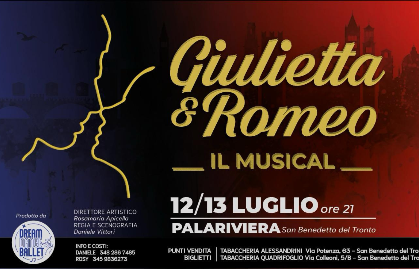 Non perderti il Musical Giulietta&Romeo” il prossimo 12 e 13 luglio al PalaRiviera di San Benedetto, alle ore 21.