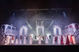 Grandi impianti scenografici si muovono sul palco, creando cambi scena sempre d’effetto.