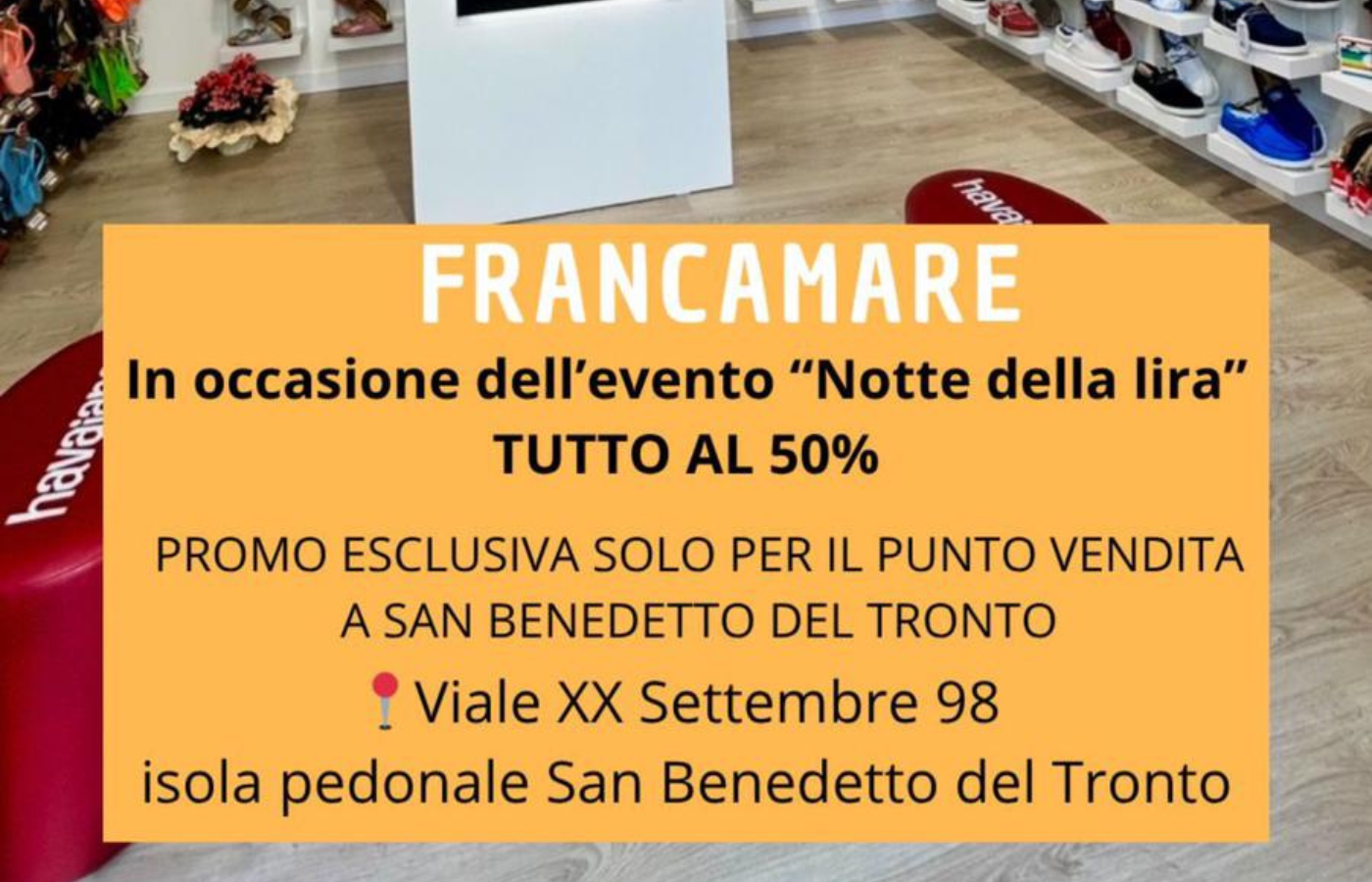 In occasione della Notte della Lira, lo store FrancaMare di San Benedetto del Tronto lancia una promozione esclusiva: tutto al 50% di sconto.