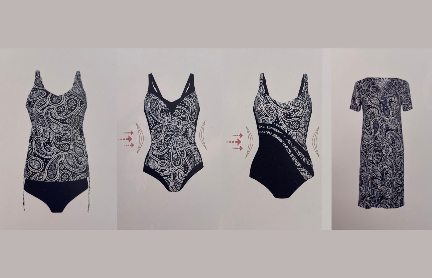 Il Paisley Passion di Anita è un esempio di abito comodo e fresco, che arriva fino alla taglia 62.