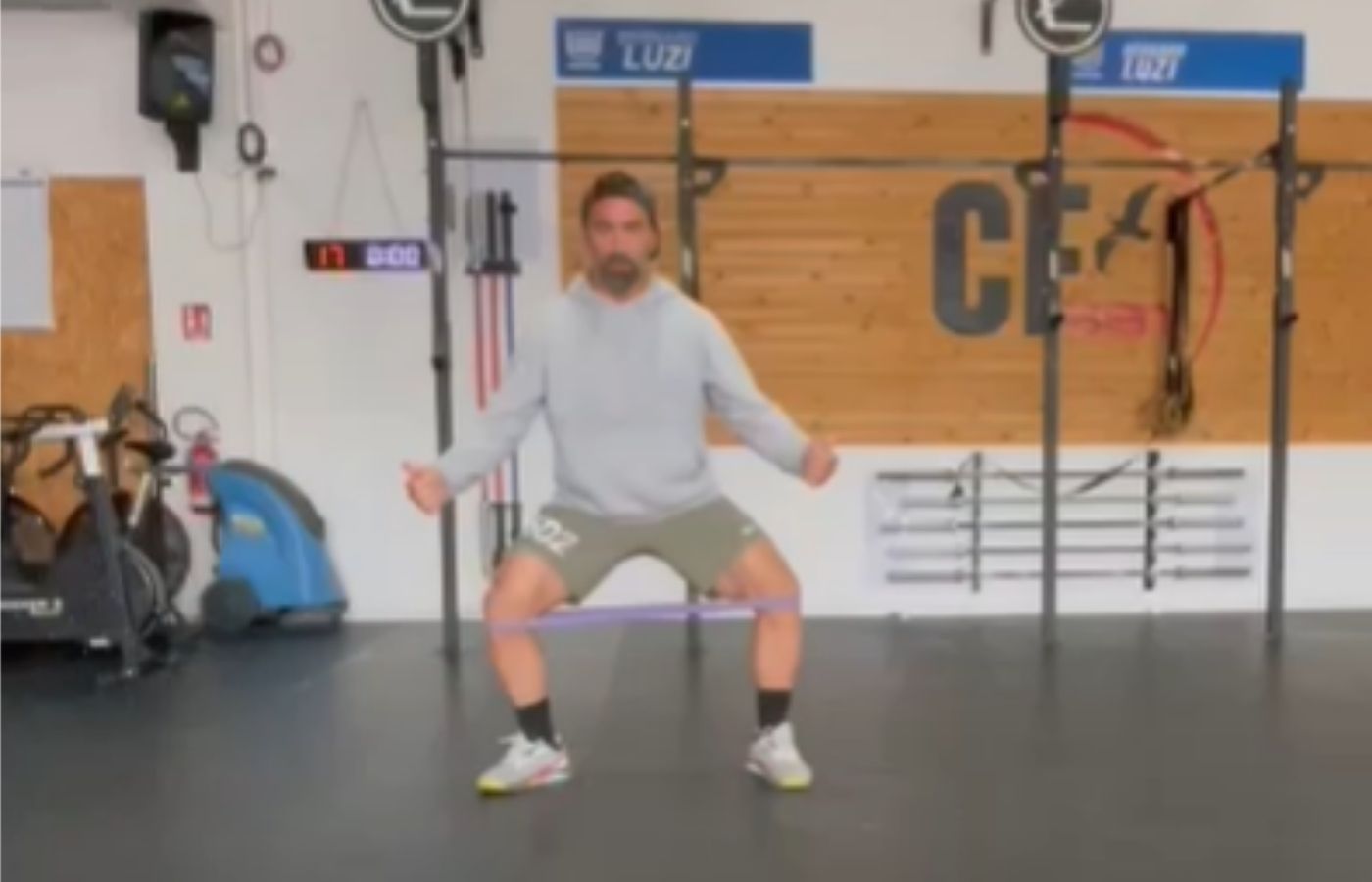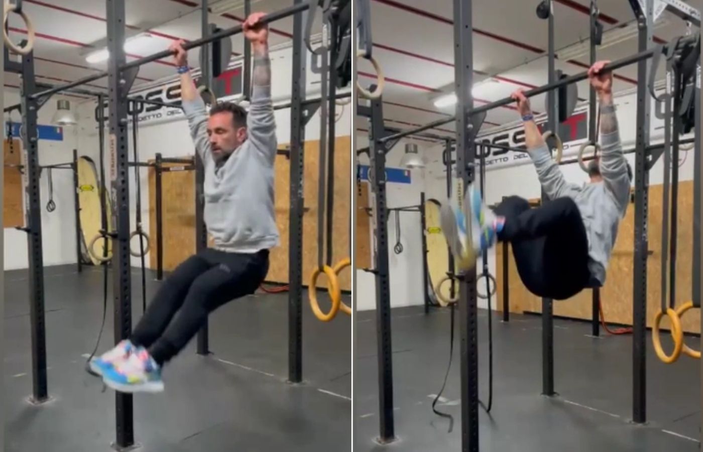 Bernard Luzi, coach di Crossfit San Benedetto del Tronto, illustra un esercizio per rafforzare le braccia.