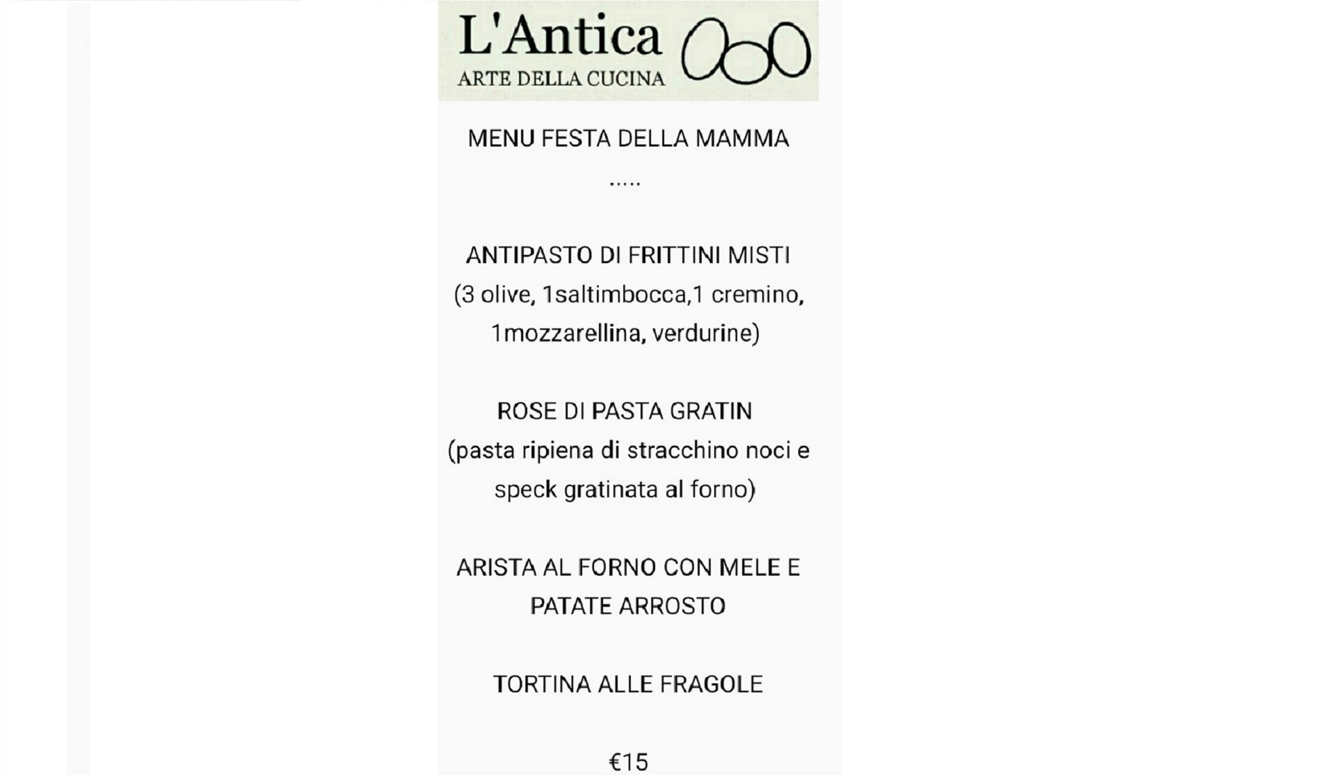 Il menù ha un costo di 15 euro.