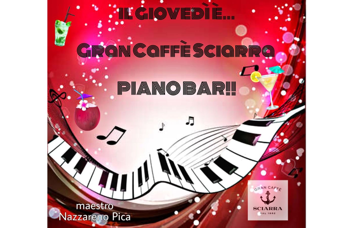 Gran Caffè Sciarra vi aspetta per l’ultimo piano bar della stagione! Giovedì 8 settembre