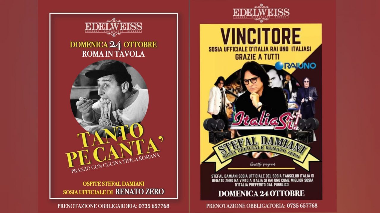 Tanto Pe Canta’, il 24 ottobre all’Edelweiss cucina romana e ospite il sosia di Renato Zero