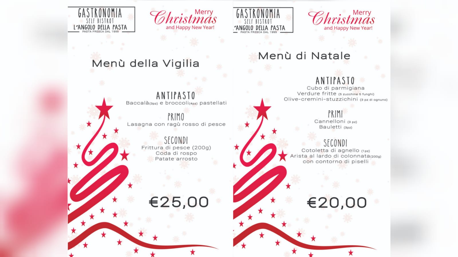 L’Angolo della Pasta presenta i menù delle feste. Disponibili il 24, 25 e 31 dicembre