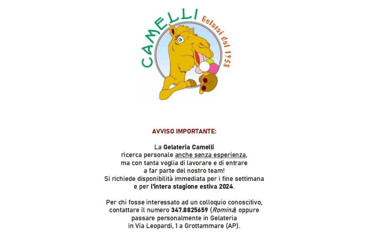 A partire dalle ore 21, Camelli offrirà una festa spettacolare, che prevede ovviamente dell’ottimo gelato artigianale ma non solo…
