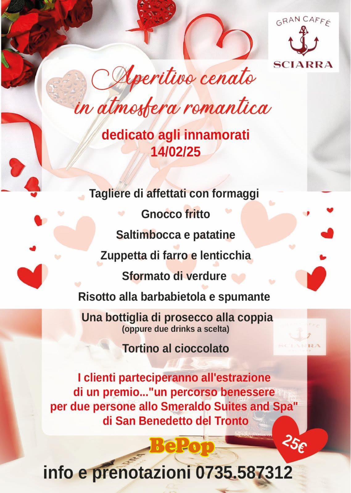 Il Gran Caffè Sciarra propone un meraviglioso aperitivo cenato in una calda e romantica atmosfera il 14 febbraio!