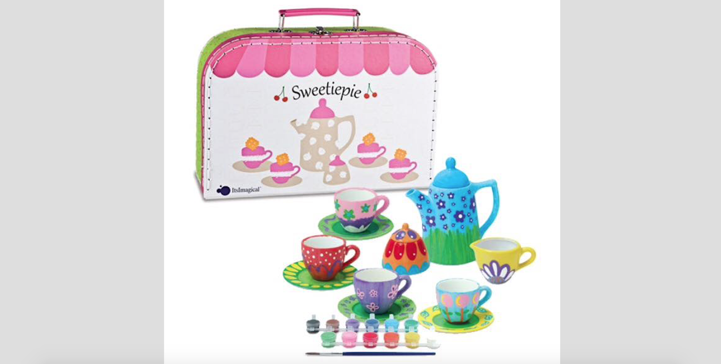 Conosci la valigetta con un servizio da tè in ceramica tutto da dipingere di Imaginarium?