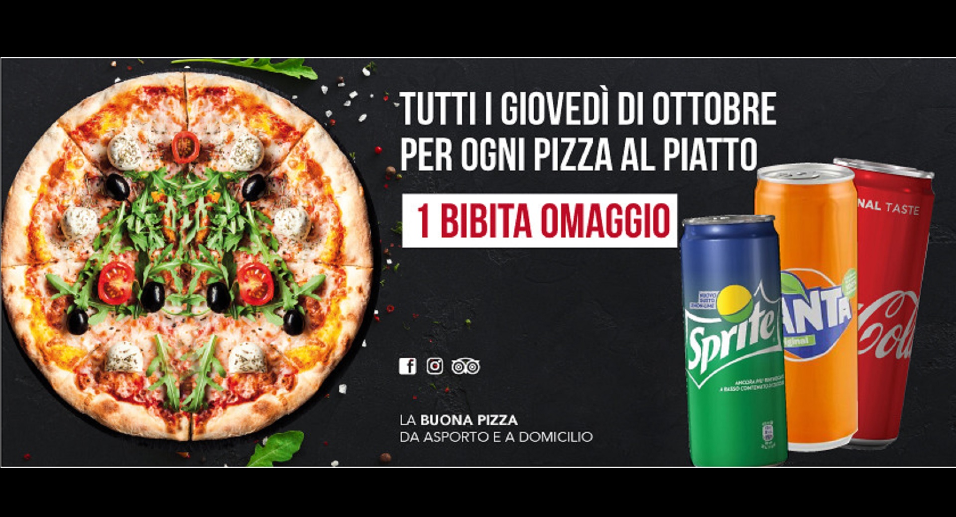 Ogni giovedì, per ogni pizza al piatto avrai una bibita in omaggio.