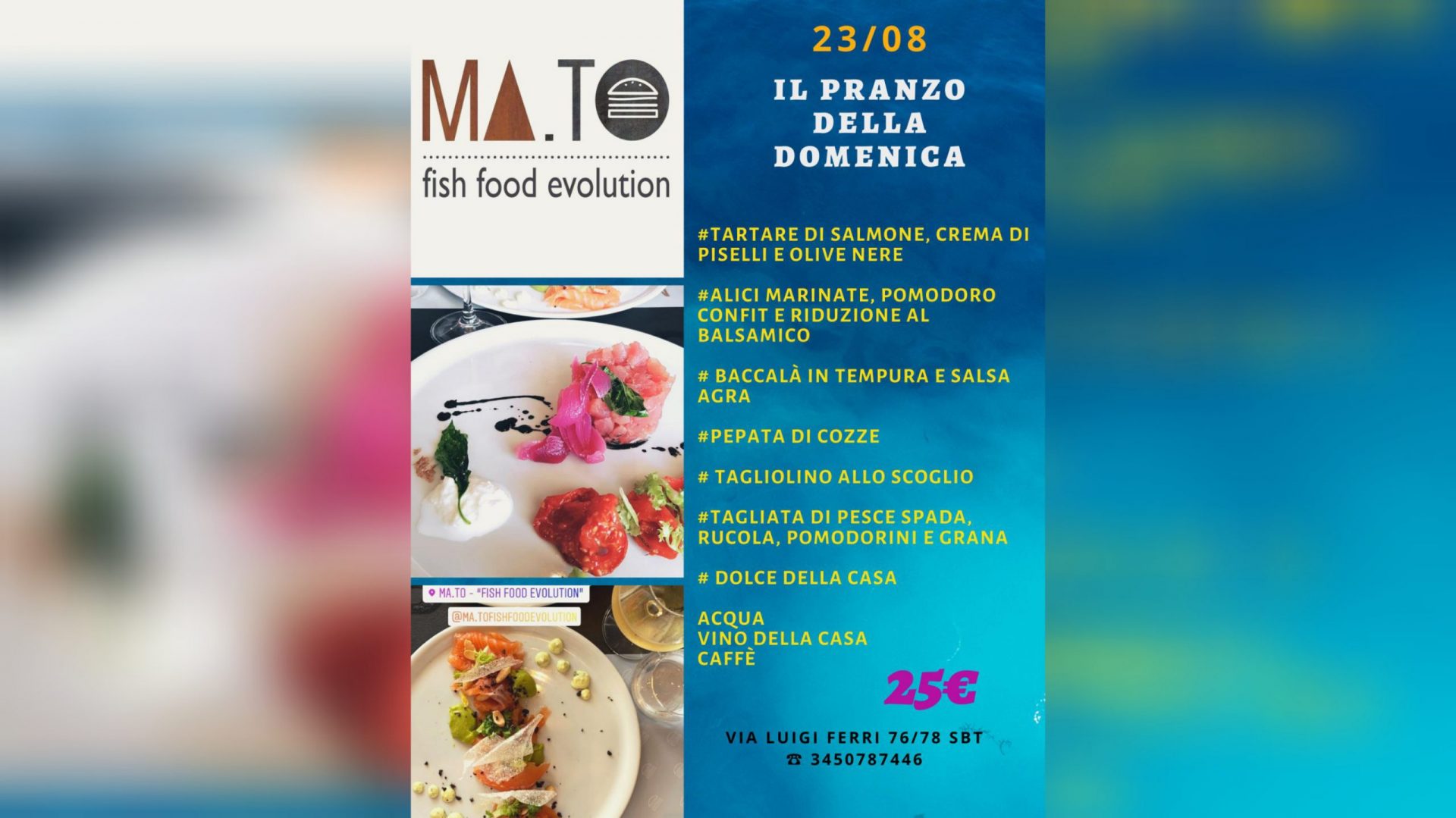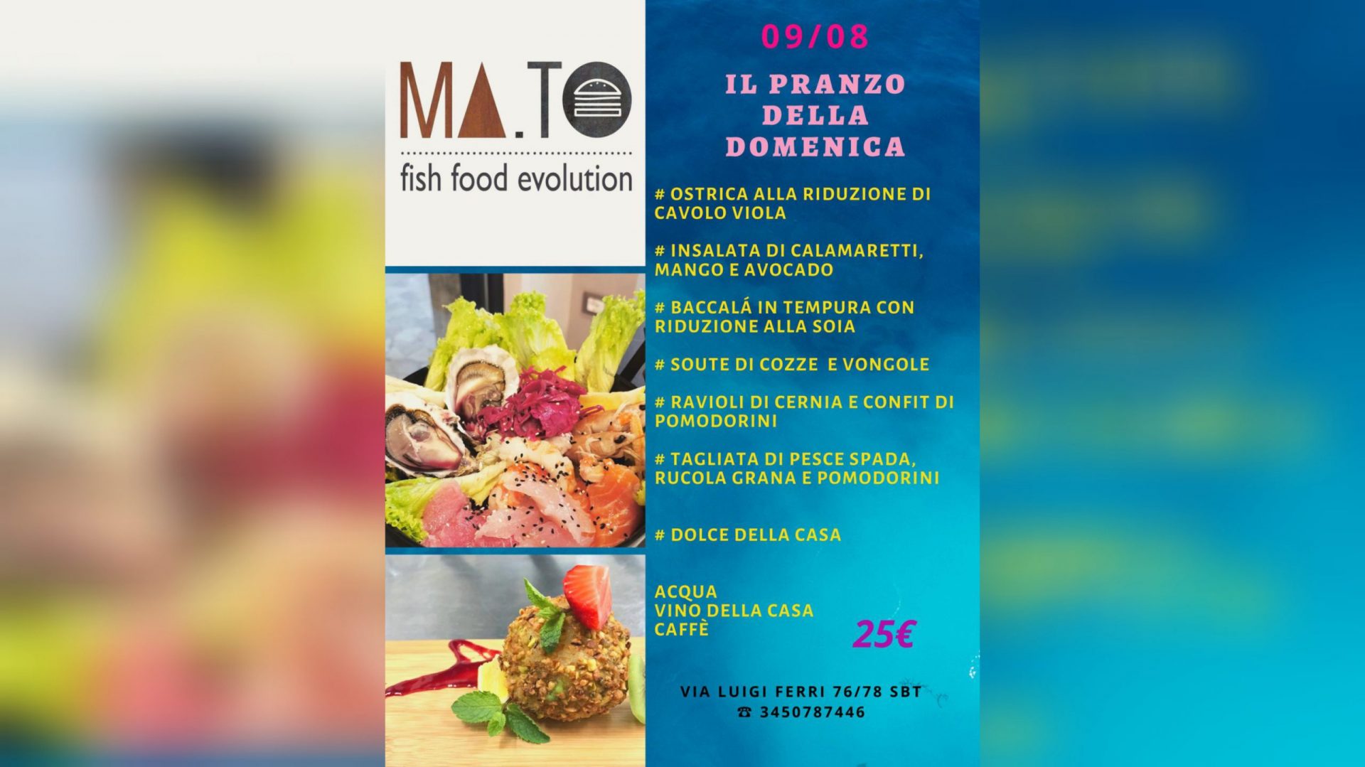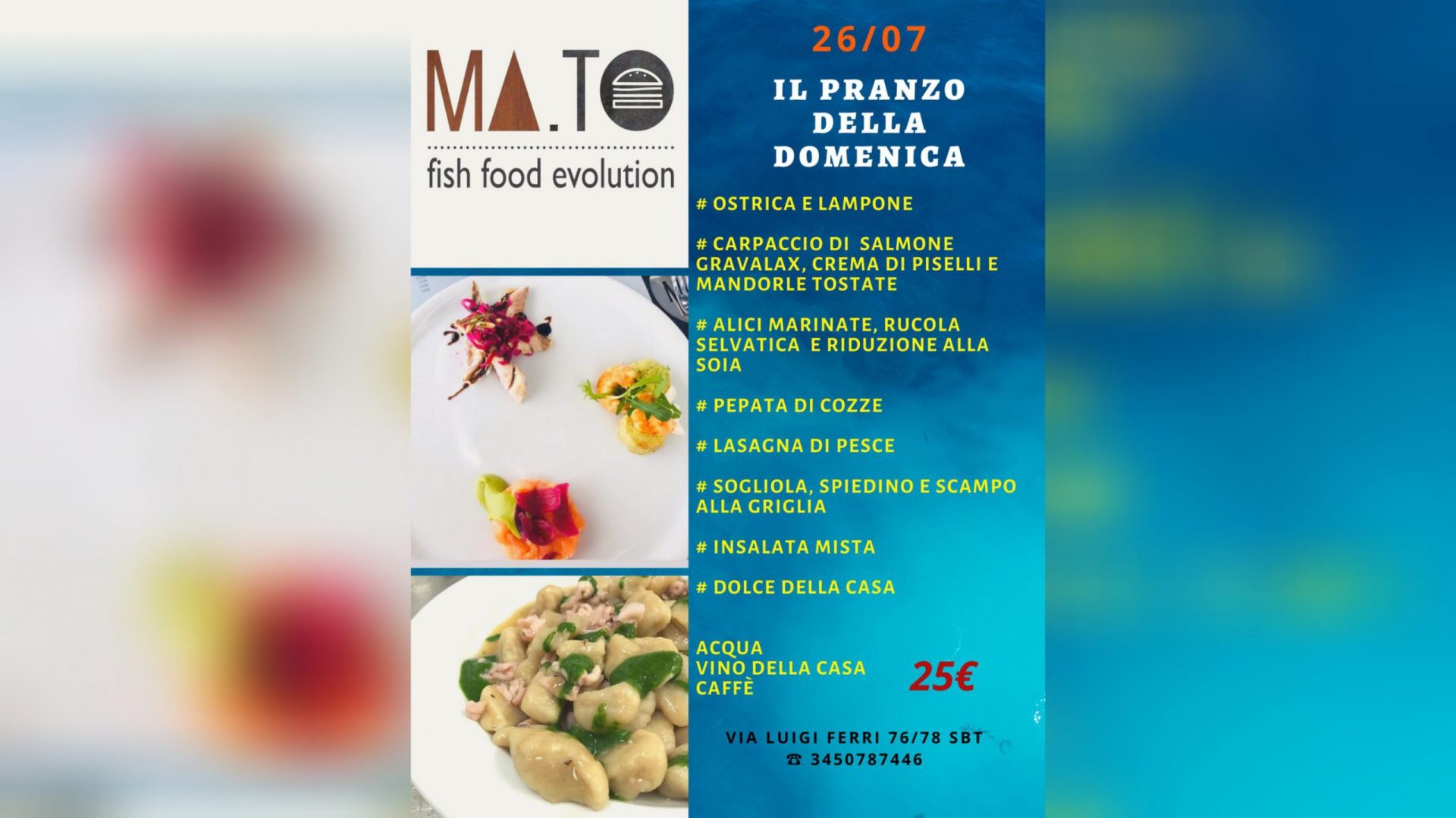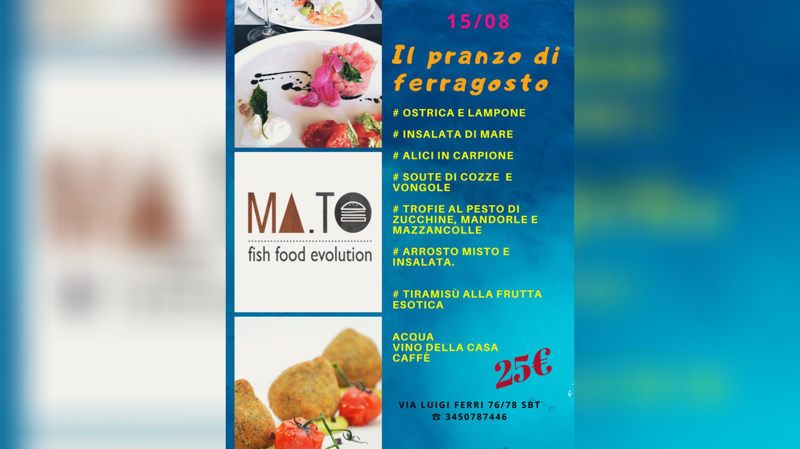 Ma.To si trova in via Luigi Ferri 76, a San Benedetto del Tronto. Per info e prenotazioni: 345/078 7446. Per visitare la pagina facebook clicca www.facebook.com/pg/fishfoodevolution
