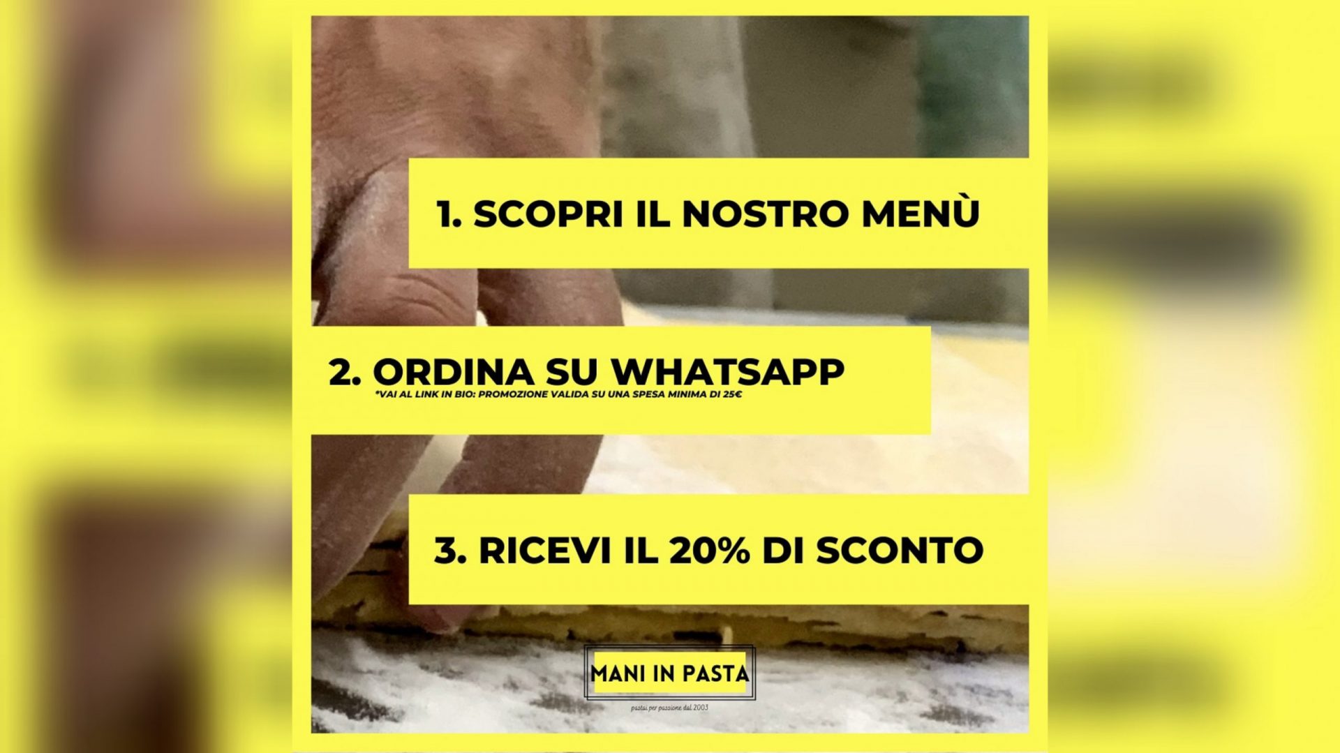 1) Segui la pagina Mani in Pasta (@maniinpasta_sbt) e scopri il menù