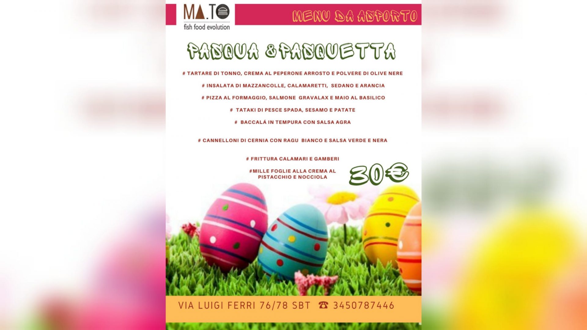È il menù di Ma.To, ordinalo da asporto al 345 078 7446