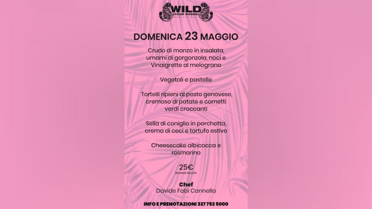 Il Wild Four Roses ti aspetta il 23 maggio con un menù davvero invitante.