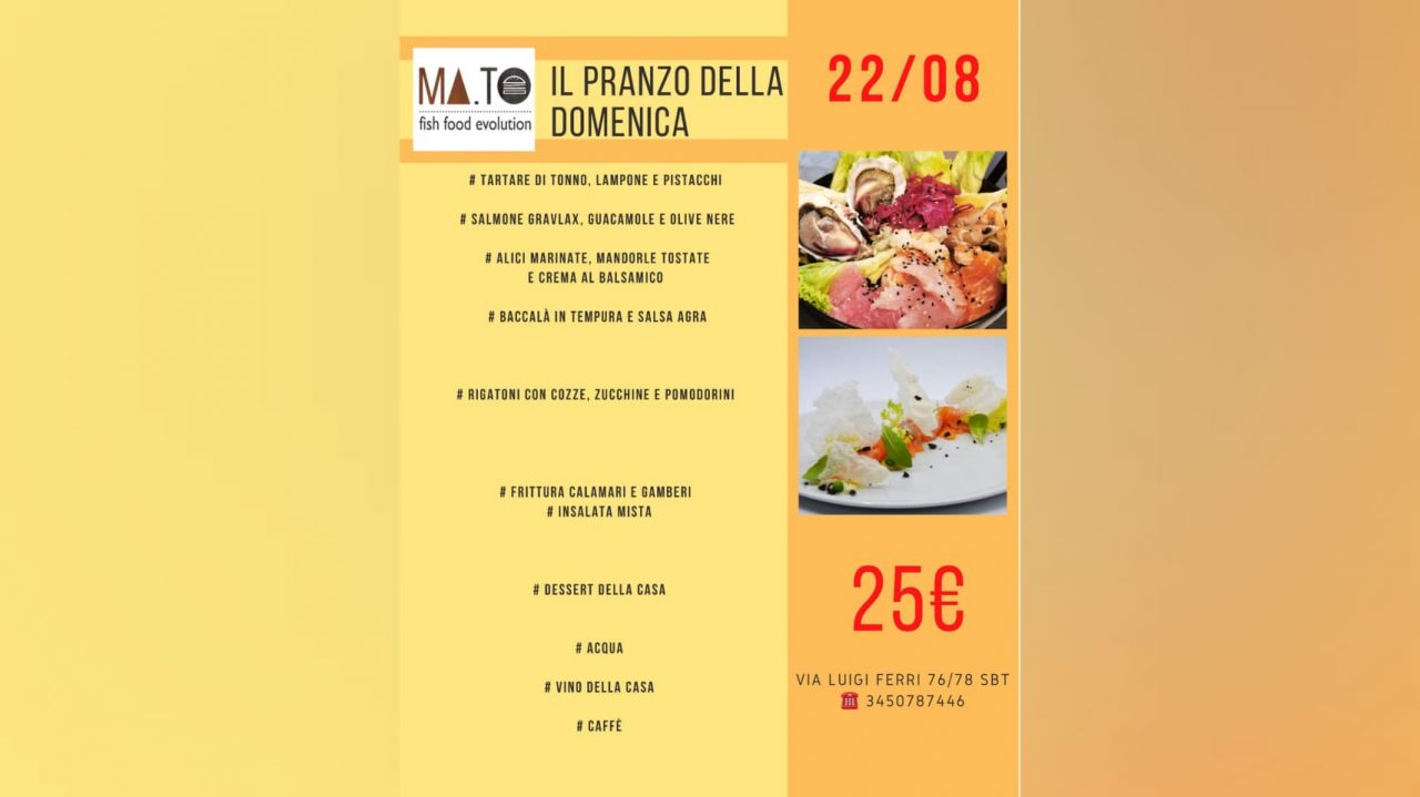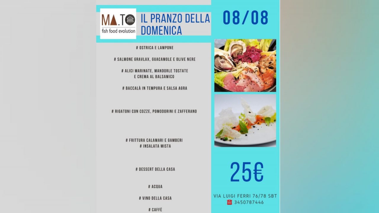 Ma.To si trova in via Luigi Ferri 76, a San Benedetto del Tronto. Per visitare la pagina facebook clicca www.facebook.com/pg/fishfoodevolution