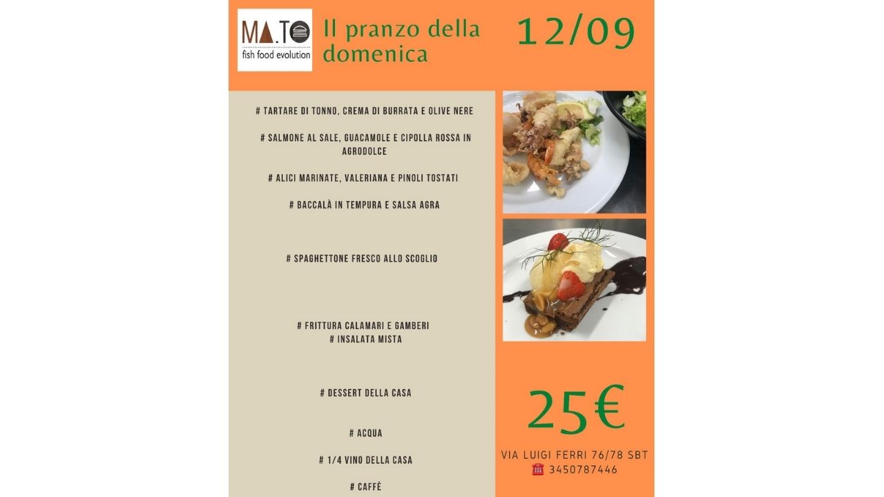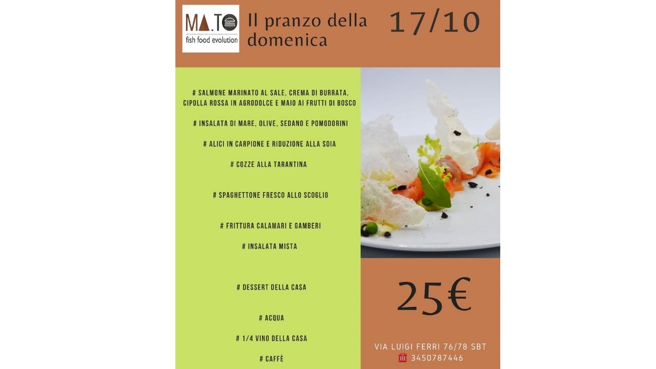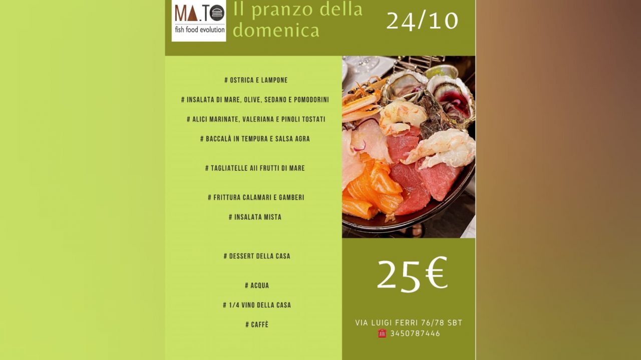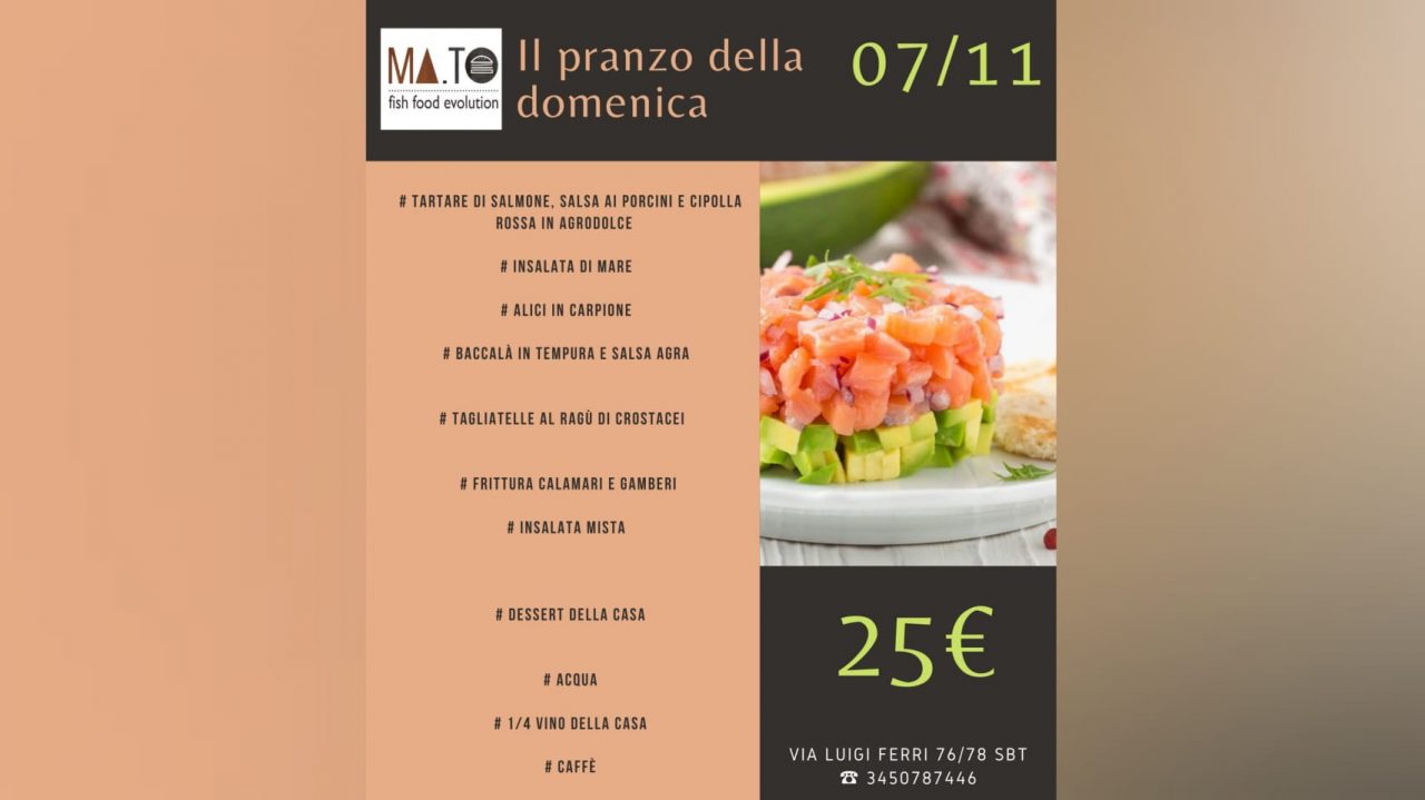 La domenica è appuntamento fisso da Ma.To! Ecco il menù del 7 novembre
