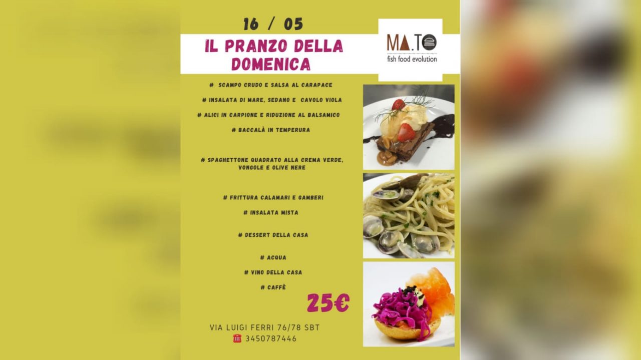 La domenica ha tutto un altro sapore da Ma.To…Ecco il menù del 16 maggio